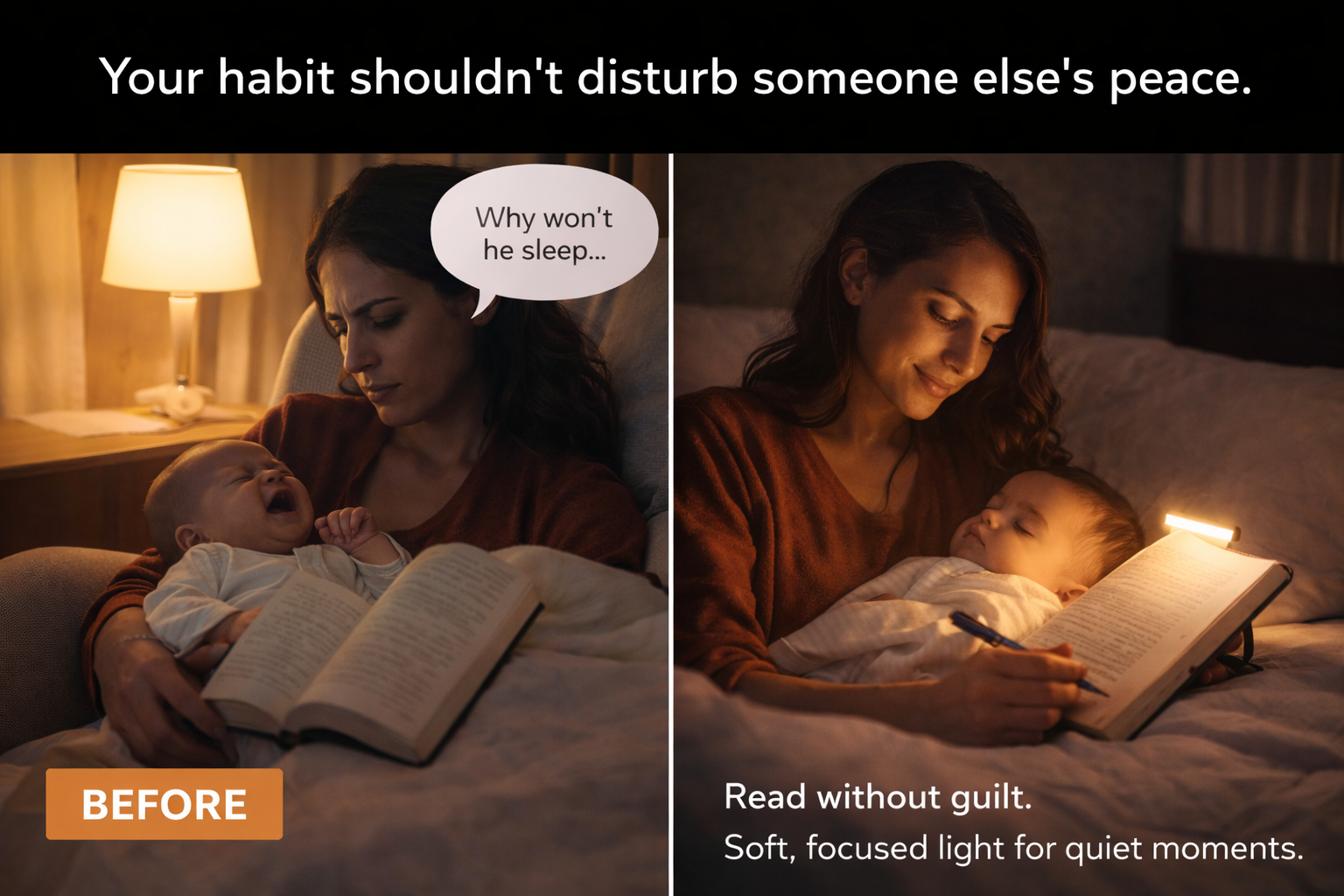 Directed light that stays on your pages — so you read peacefully while others sleep.
